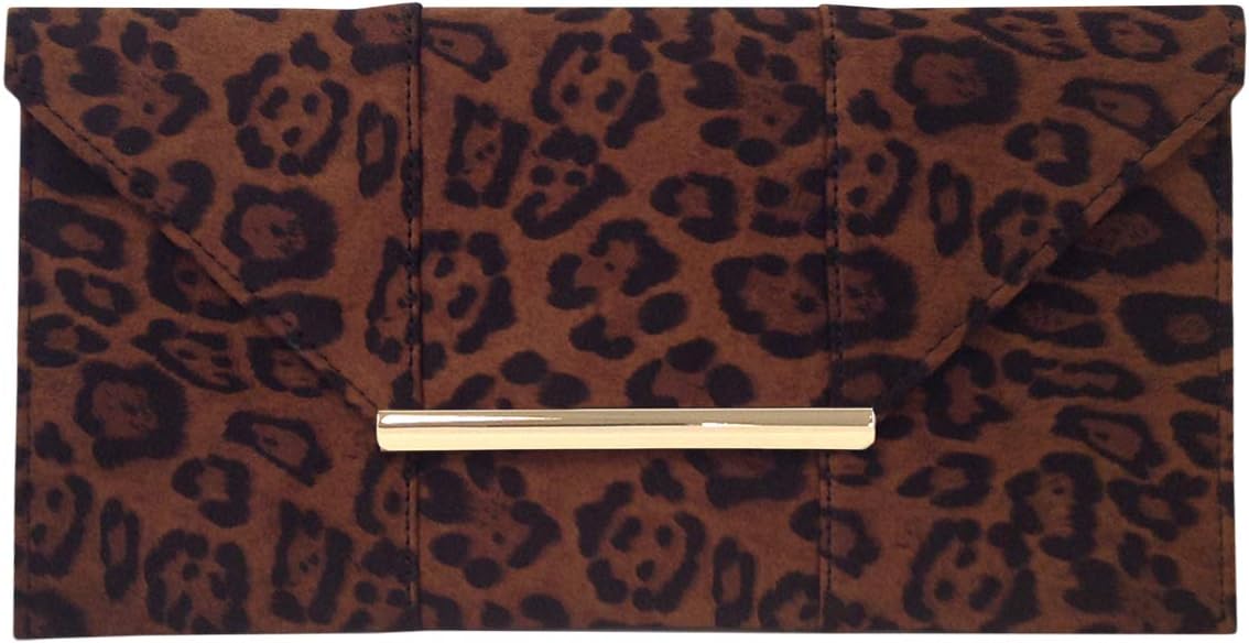 JNB Faux Suede Flat Leopard Envelope Clutch