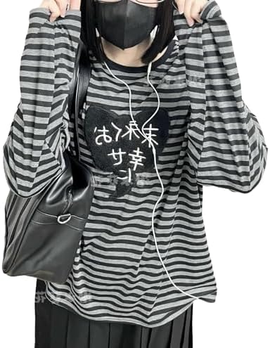 Y2k Cute Sweatshirts for Women Harajuku Kawaii Striped Sweatshirts Cartoon T-shirts