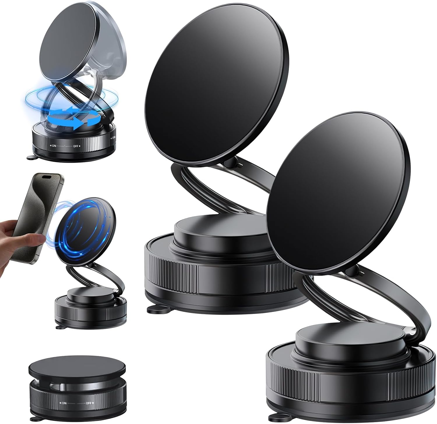 - Universal Compatibility: This Magnetic Dashboard Phone Holder Is Designed to Accommodate All Phone.For Non-magnetic Phones, Simply Use the Included Metal Ring for Easy Attachment, Ensuring That This Adjustable Vacuum Magnetic Phone Holder Fits Most Smartphones Effortlessly
