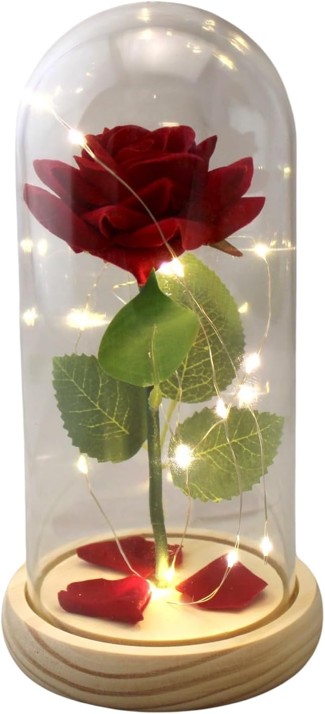 - Warm LED Glow: Soft LED string lights wrap around the rose to create a warm, romantic ambiance. Powered by 3 AAA batteries (not included).