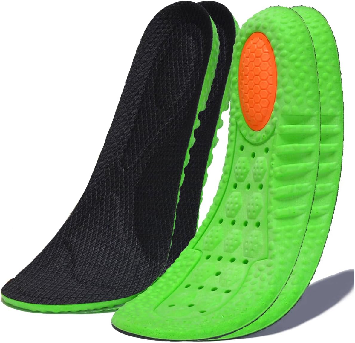 - Comfortable Insoles: High quality 15mm thick memory foam, soft and stretchy, provides excellent shock absorption and cushioning, relieve foot and joint pain, including Knee Pain, Shin Splints, Plantar Fasciitis, and Ankle Pain. reduce foot pressure, making you comfortable every day