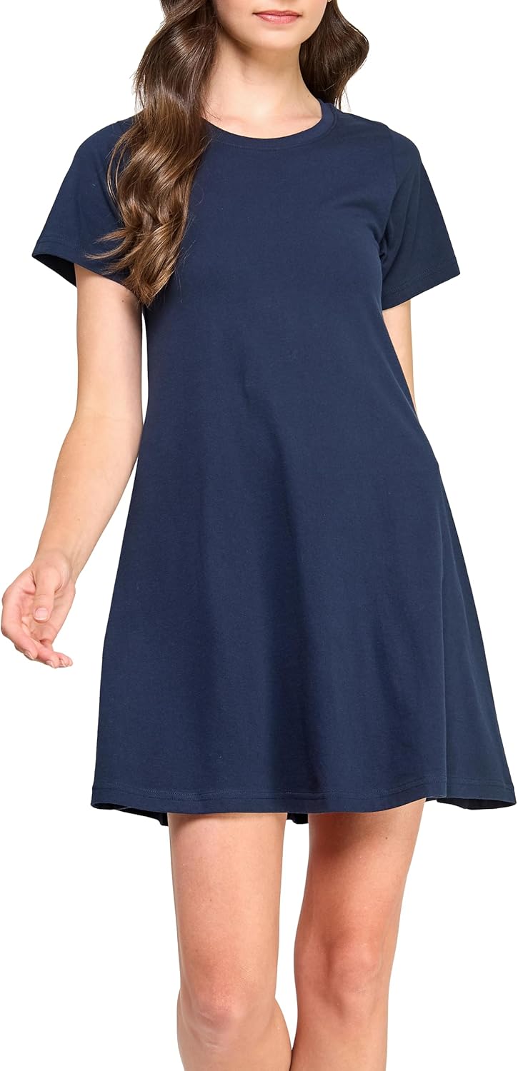 GREEN VOYAGE Women's GOTS Certified 100% Organic Cotton Solid Relaxed Fit Casual T Shirt Dress