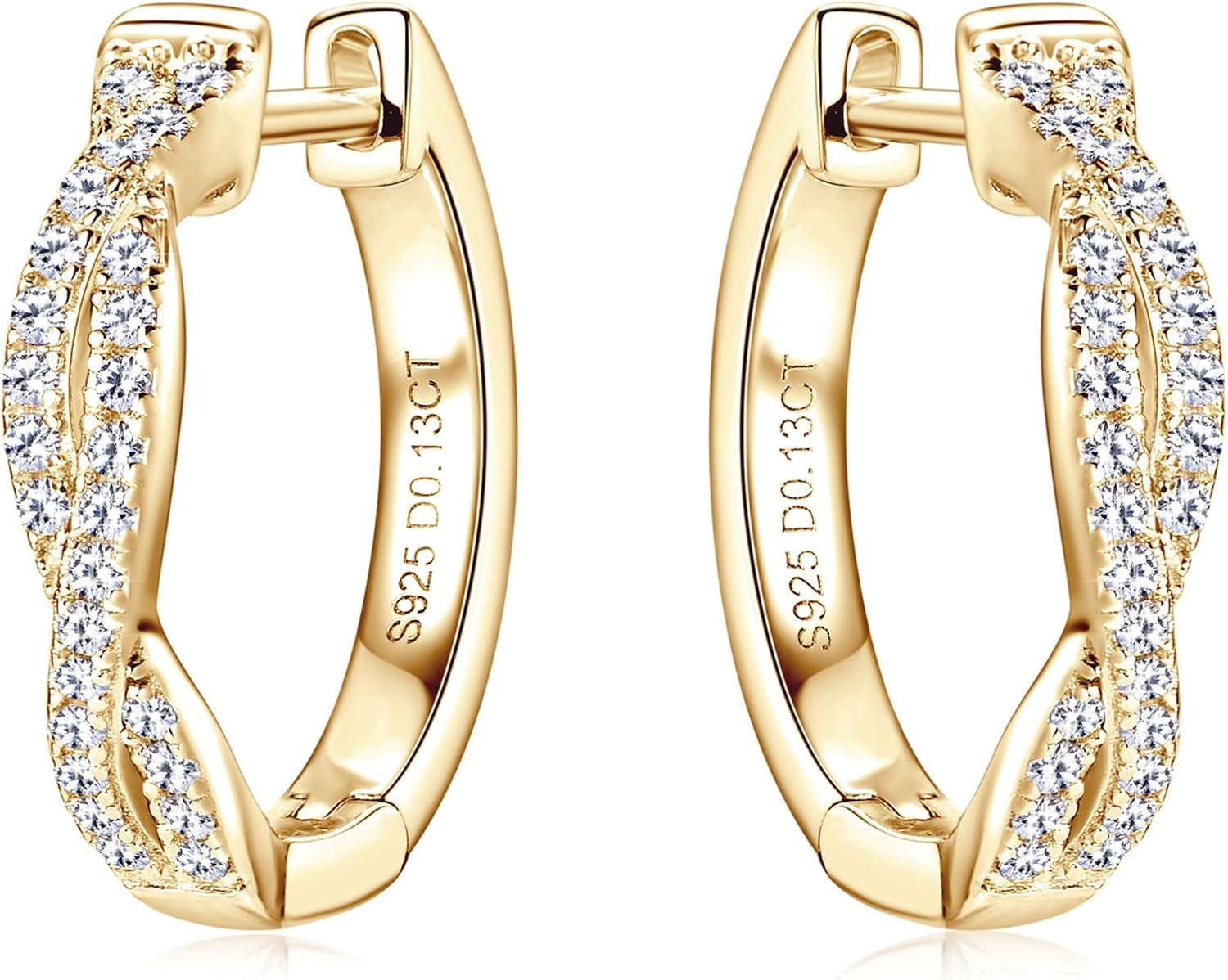 Infinity Moissanite Hoop Earrings for Women, D Color VVS1 Clarity 925 Sterling Silver Twisted Earrings for Wedding Birthday Holiday Jewelry Gifts