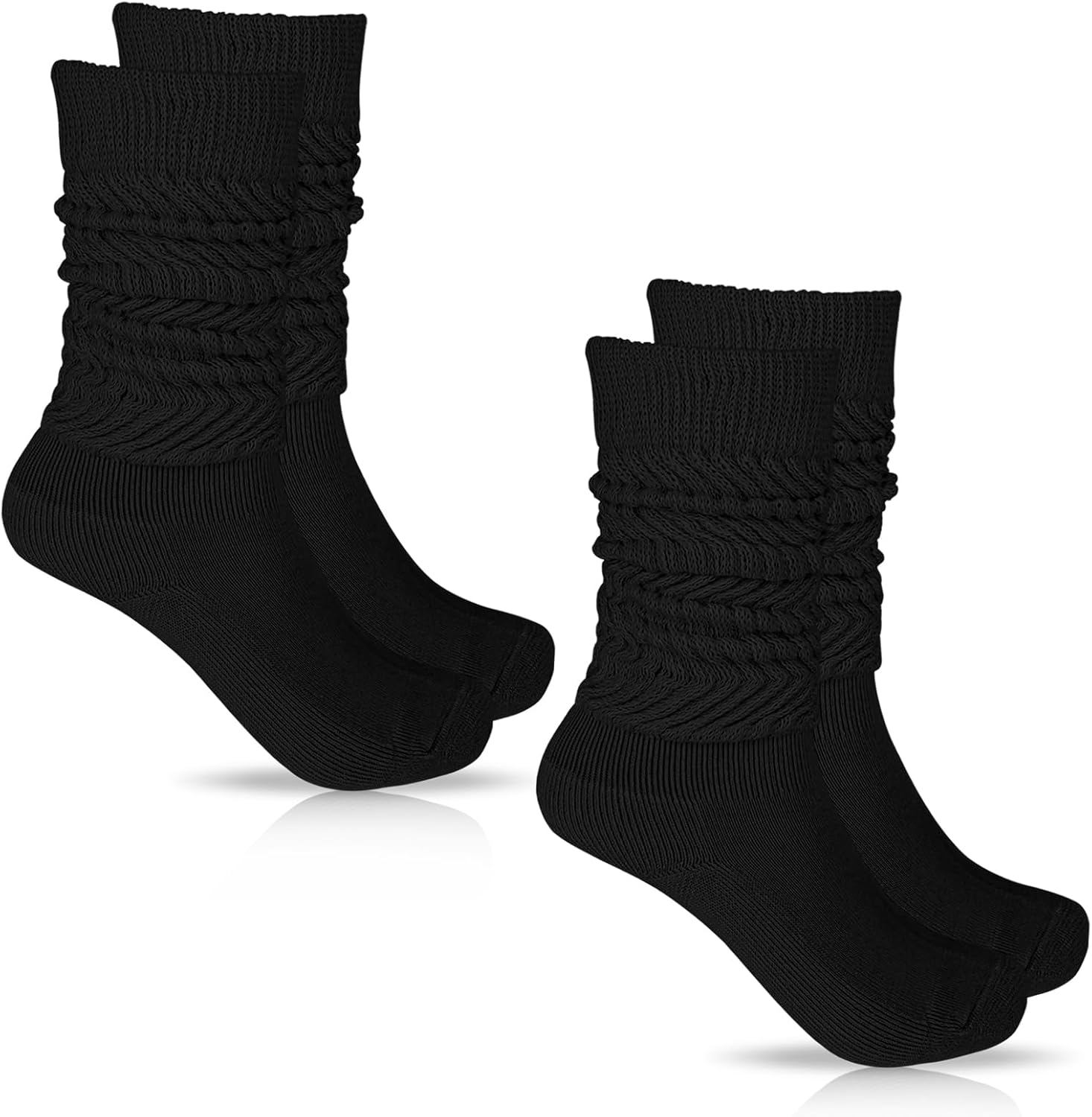 Lusofie 2 Pairs Slouch Socks for Woman Soft Cotton Crew Scrunch Socks Extra Long Thigh High Boot Socks Black