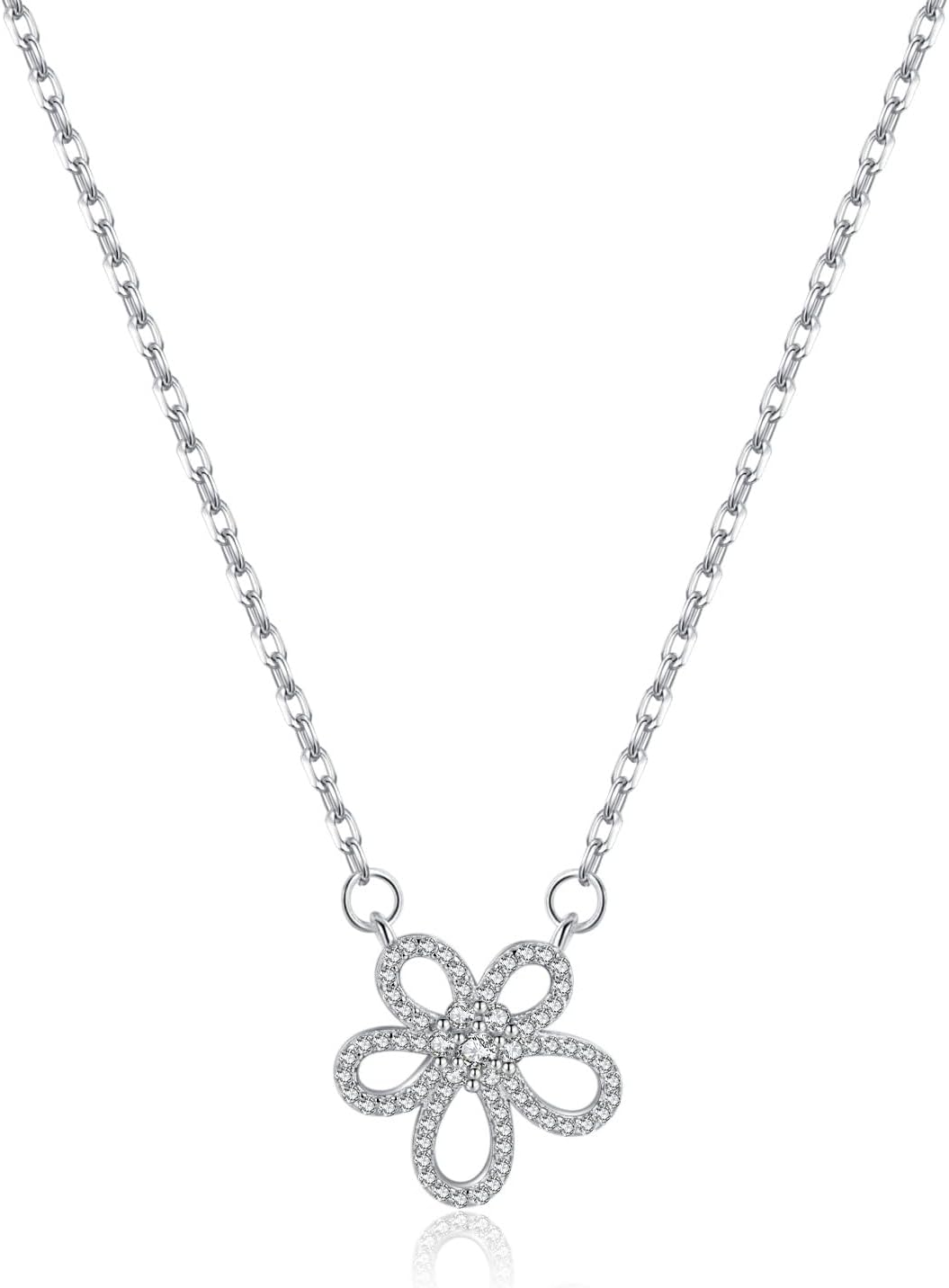 Reffeer Solid 925 Sterling Silver CZ Flower Necklace Chain for Women Teen Girls Flower Pendant Necklace Choker
