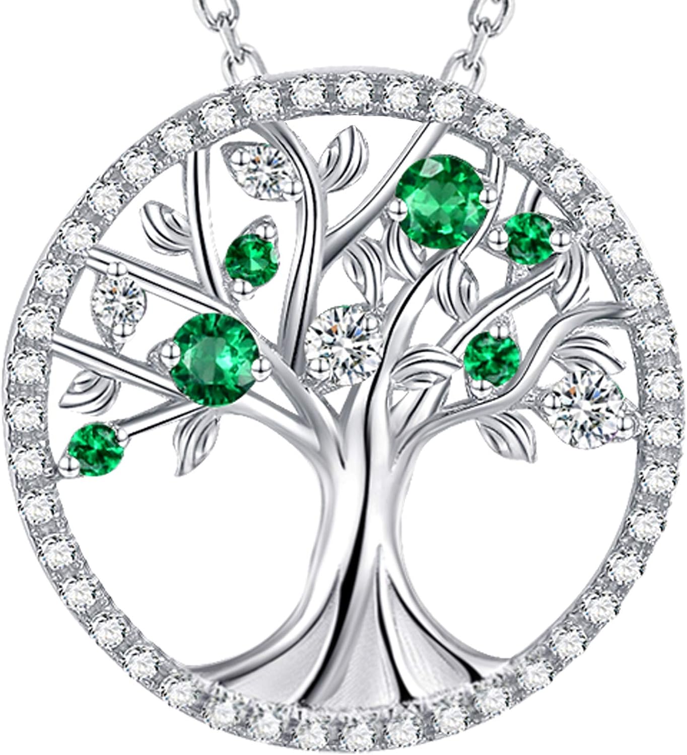Tree of Life Necklace for Women Valentines Day Birthday Gifts for Wife Mom Birthstones Aquamarine Emerald and More Stonese Jewelry Sterling Silver