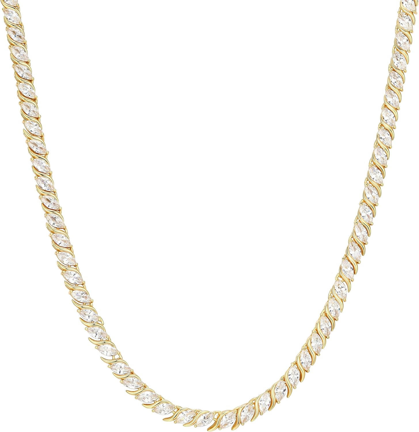 Amazon Essentials Cubic Zirconia Wave Tennis Necklace Sterling Silver, 18"