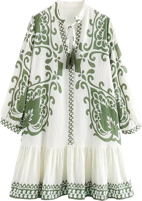 Womens Floral Printed Button Down Boho Mini Dress V Neck Long Sleeve A Line Casual Vacation Spring Dresses