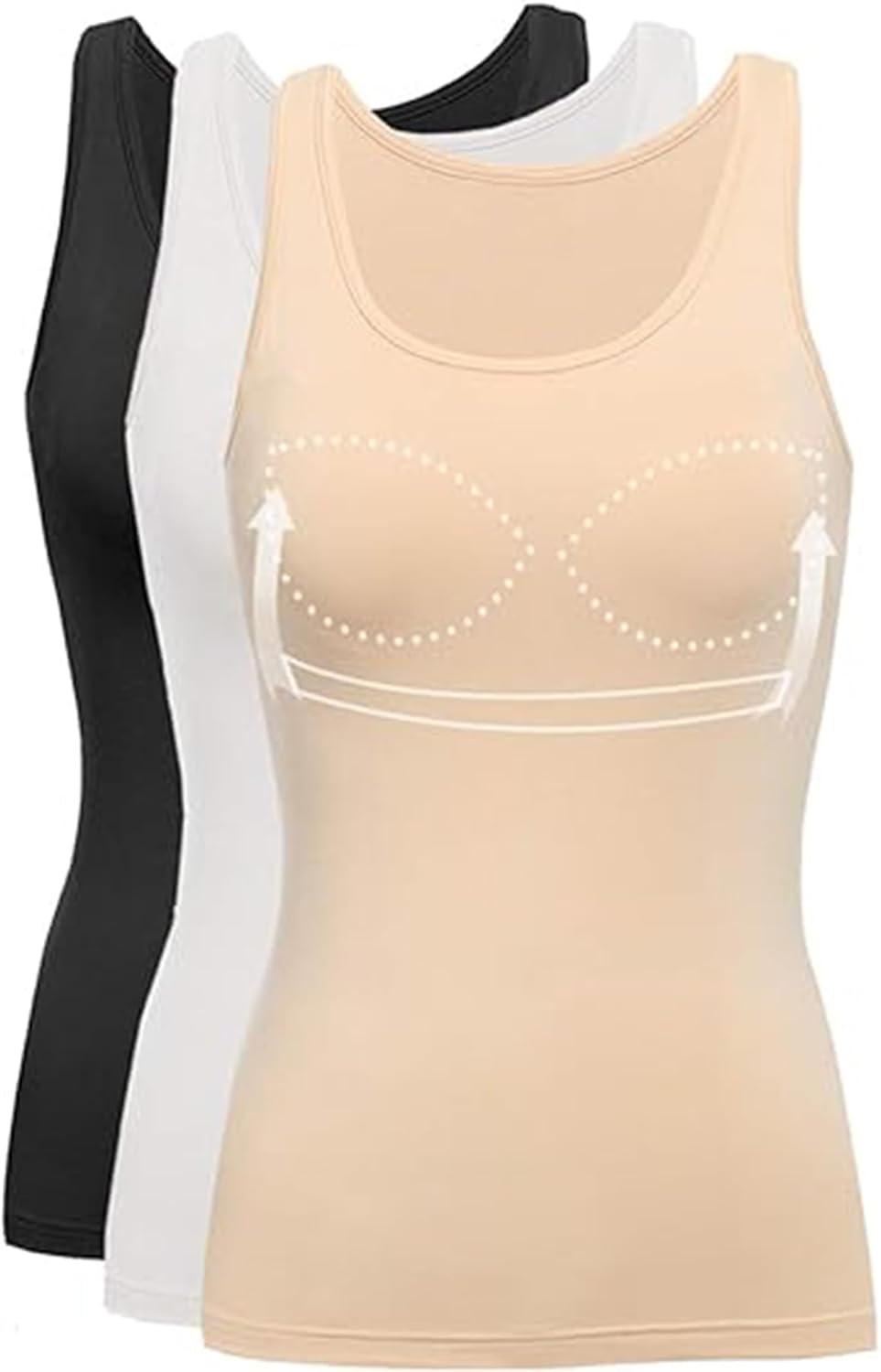 Tank Top with Built in Bra Cup for Women Casual Wide Strap Sleevless Layer Camisole Yoga Top Pack S-3XL