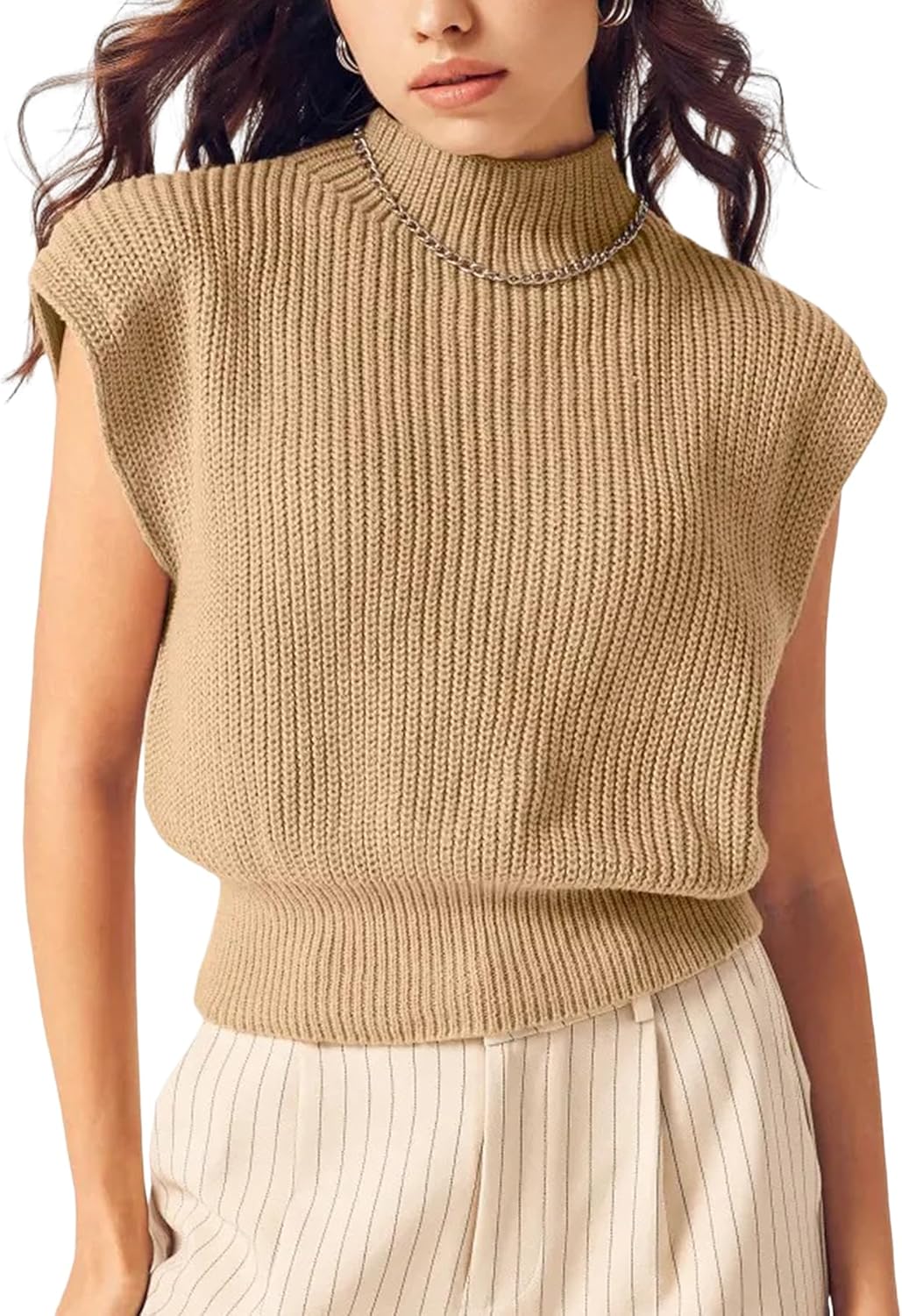 Women’s Mock Neck Sweater Vest Casual Cap Sleeve Ribbed Knit Pullover Summer Trendy Tank Top Clothes for Spring Fall