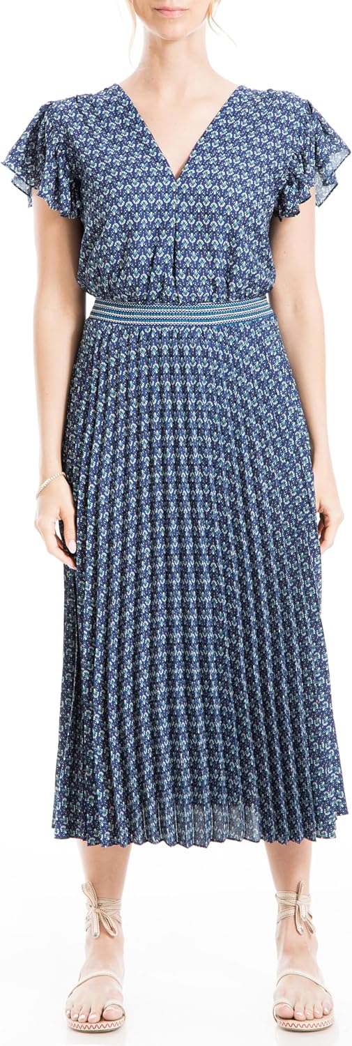 Max Studio Women's Crepe Short Sleeve Pleated Midi Dress