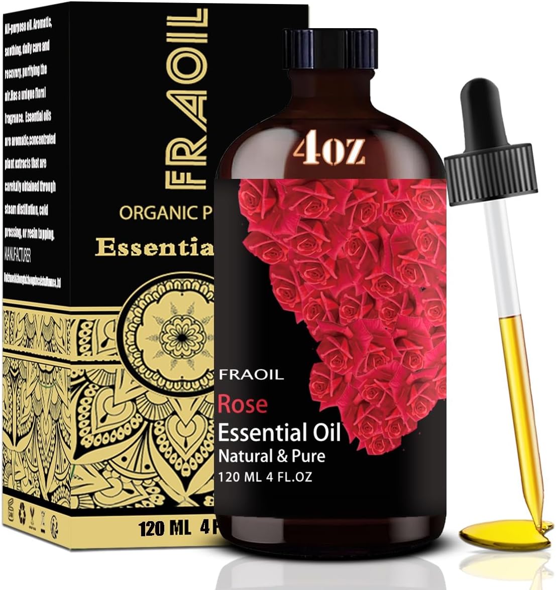 - Premium Rose Essential Oil: Enjoy the refreshing and soothing aroma of Rose Essential Oil, FRAOIL Rose Essential Oil is an upgraded and enhanced formula that has been sorted and bottled through a rigorous and standardized process to ensure the highest quality ingredients. Whether you use it for home aromatherapy or perfumery, this Rose essential oil will bring you a relaxing atmosphere.