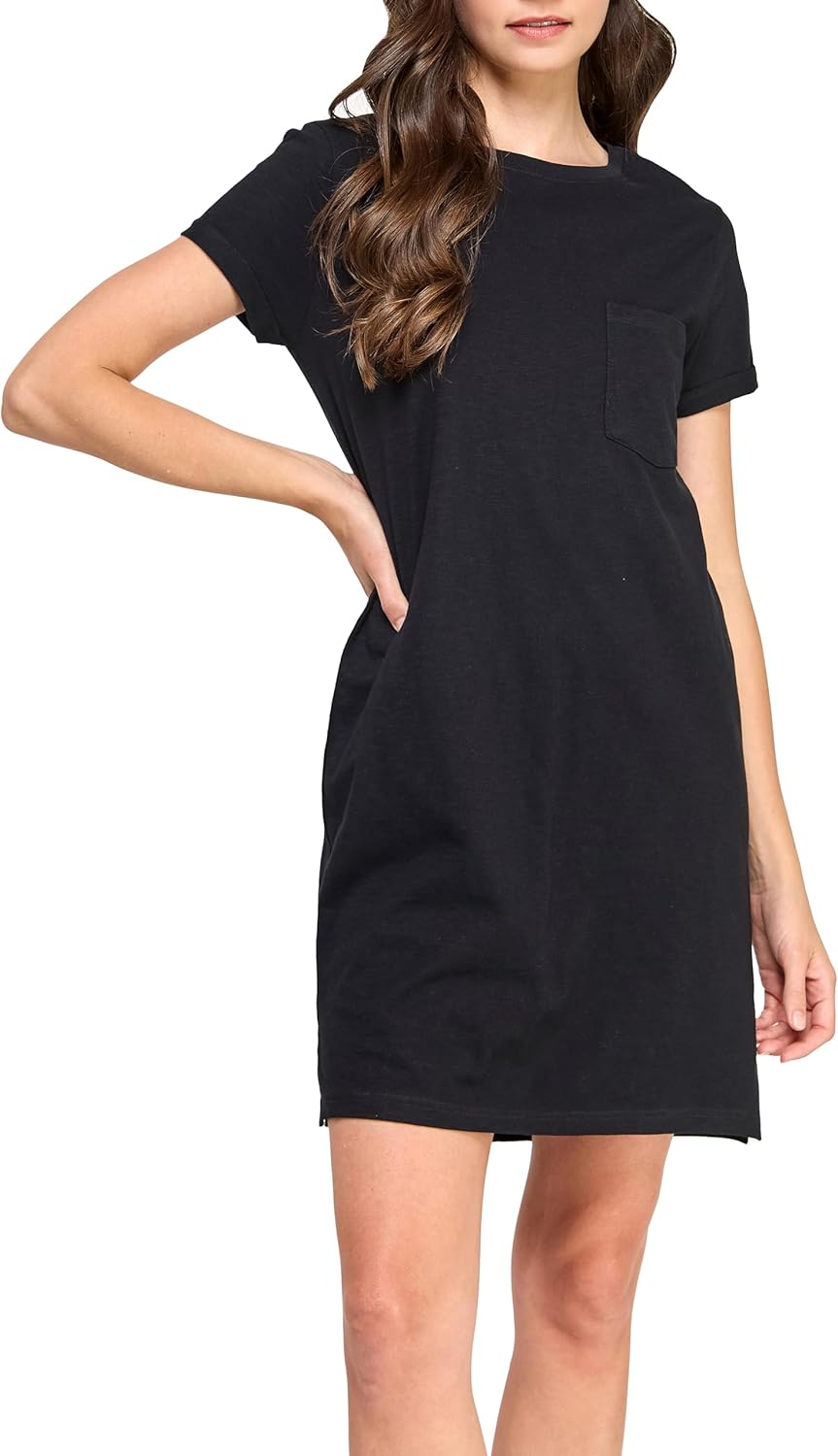 GREEN VOYAGE Women's GOTS Certified 100% Organic Cotton Slub Pocket Loose Fit T Shirt Dress