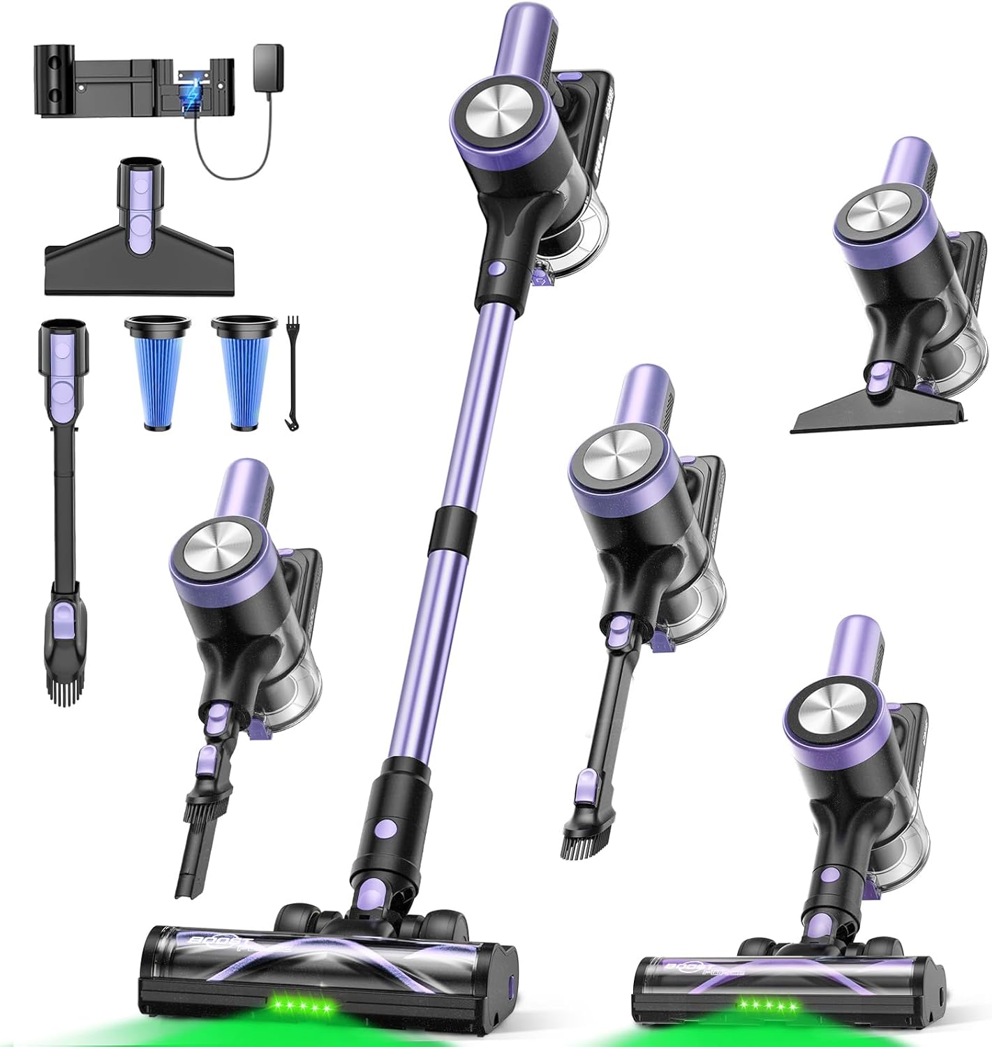 - Lightweight & Versatile Attachments: Lightweight and portable, this vacuum cordless can be quickly transforms into a handheld vacuum for stairs, cars, or above-floor cleaning. The 2-in-1 brush reaches tight corners and baseboards, while the sofa brush removes embedded hair and debris from upholstery, beds, and mattresses.