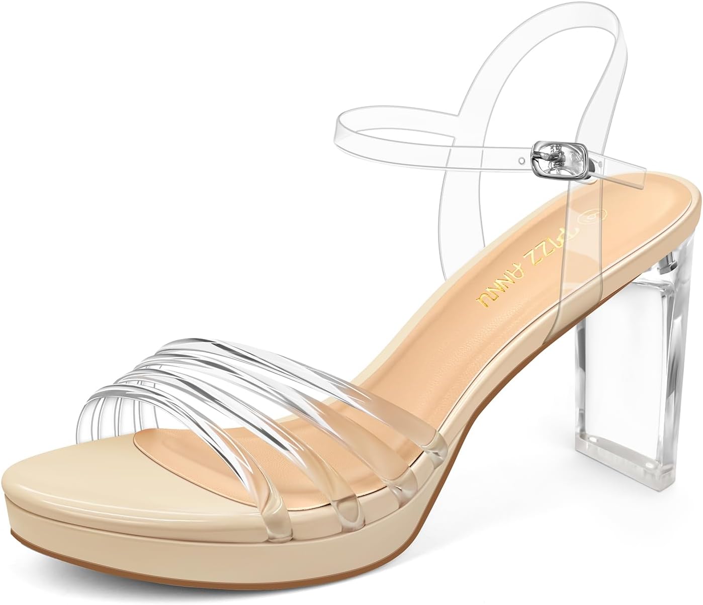 PIZZ ANNU Lena Women's Platform Heels High Block Chunky Sparkly Rhinestone Open Toe Ankle Strap Fashion Dress Pump Sandals Shoes for Party Wedding
