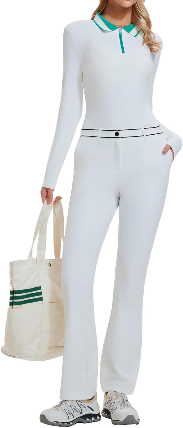 AFZ Women Golf Outfits Color Block Polo Top and Elastic Waisted Golf Pants Business Travel Sweatpants with 4 Pockets