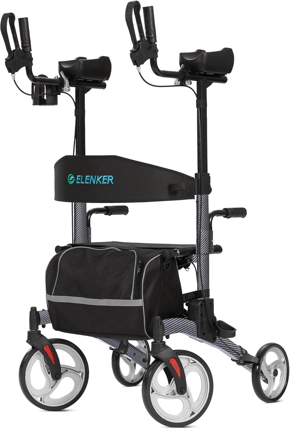 ELENKER Upright Walker, Stand Up Folding Rollator Walker with 10” Front Wheels Backrest Seat and Padded Armrest for Seniors(Carbon Fiber Black)