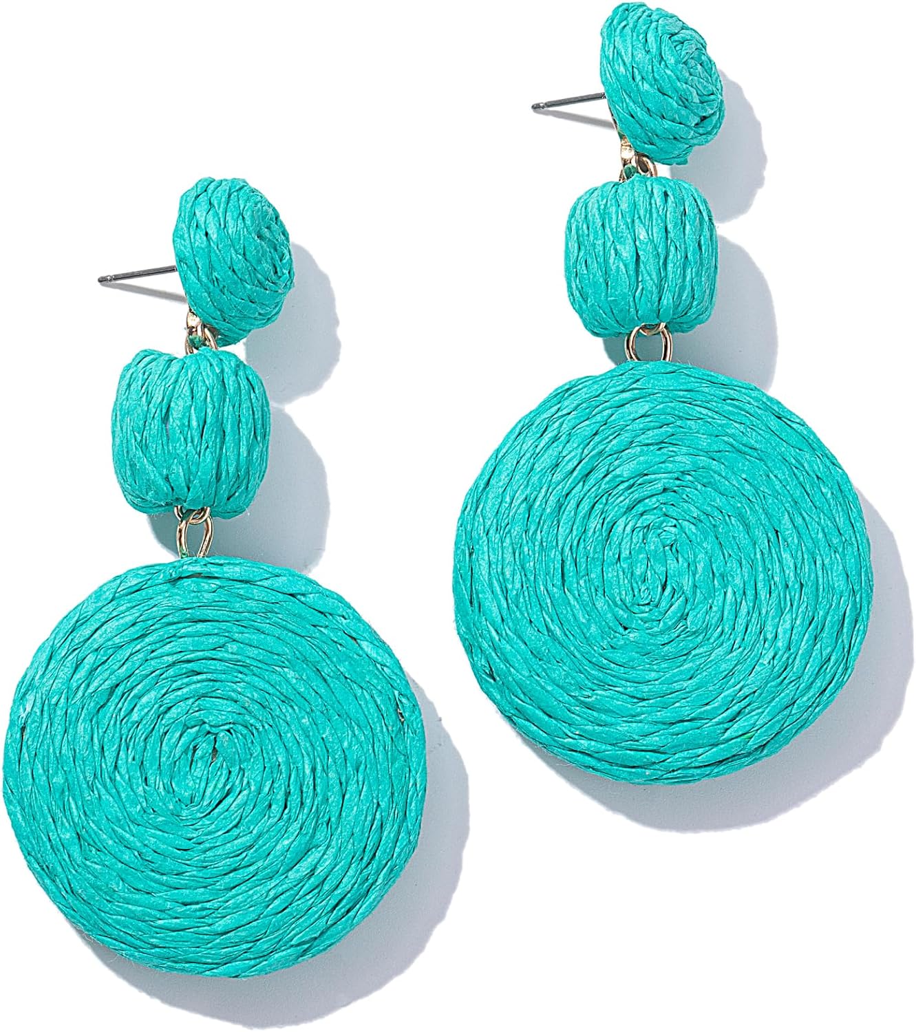 Statement Raffia Boho Round Dangle Ball Earrings - Cute Handmade Summer Bohemian Dangling Jewelry for Women