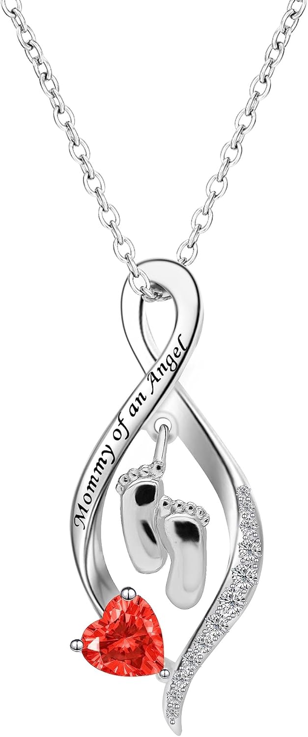 Mommy of an Angel Necklace Sterling Silver Created Birthstone Jewelry Sympathy Gift Stillborn Pendant Necklace for Women Mother Mom