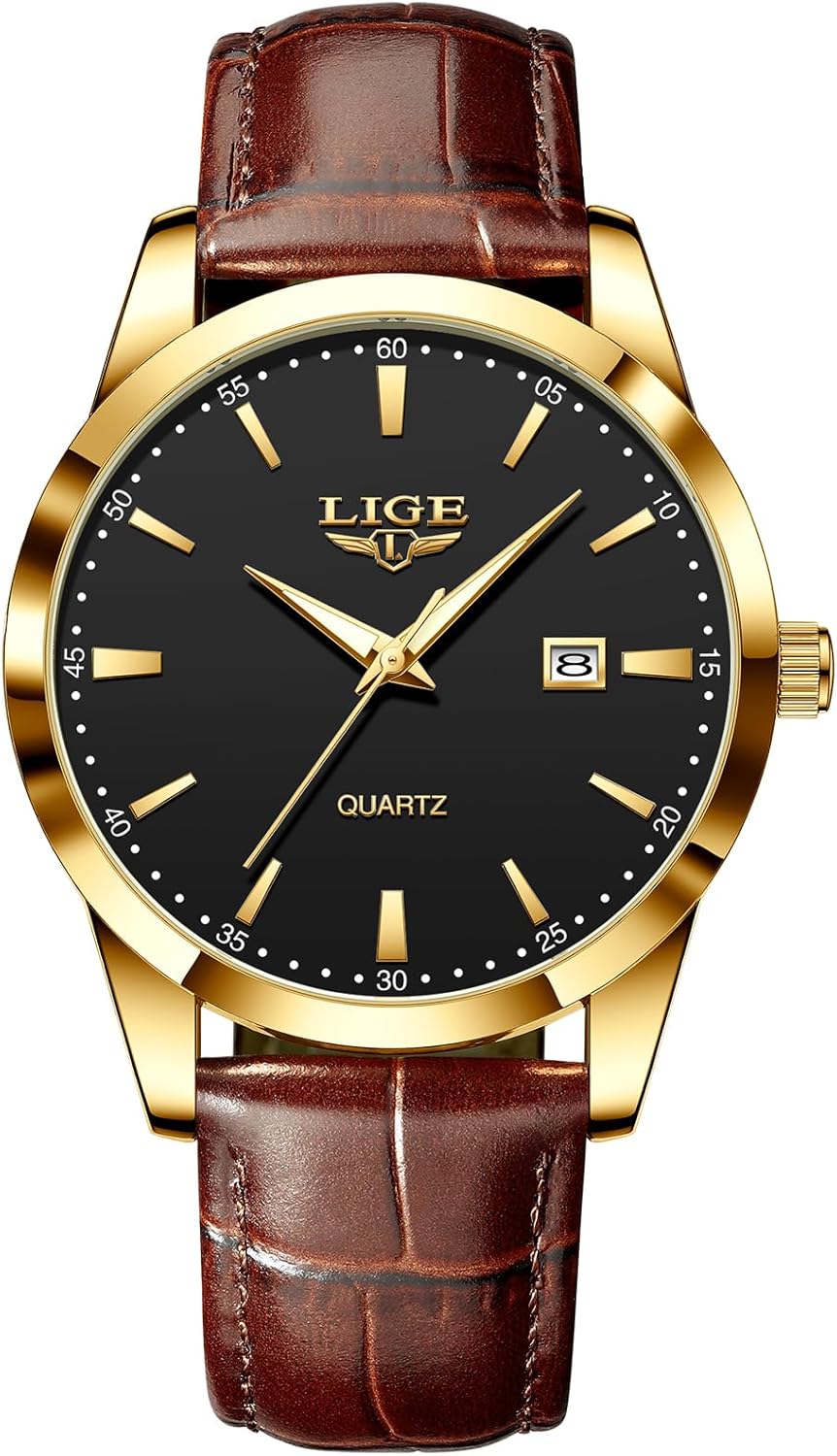 LIGE Watches for Men Waterproof Analog Dress Vintage Chronograph Analog Casual Black Leather Stainless Steel Unique Quartz Movement Retro Luminous Elegant Men's Wrist Watch Date Display