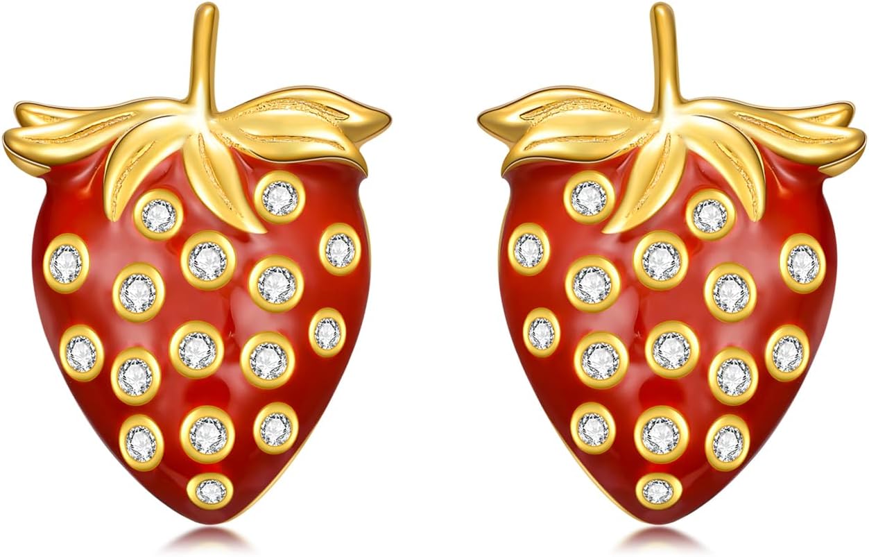 Diamond Strawberry Stud Earrings for Women 925 Sterling Silver Strawberry Earrings with Lab Grown Diamond Jewelry Gifts for Mom Wife Girlfriend Daughter Sister