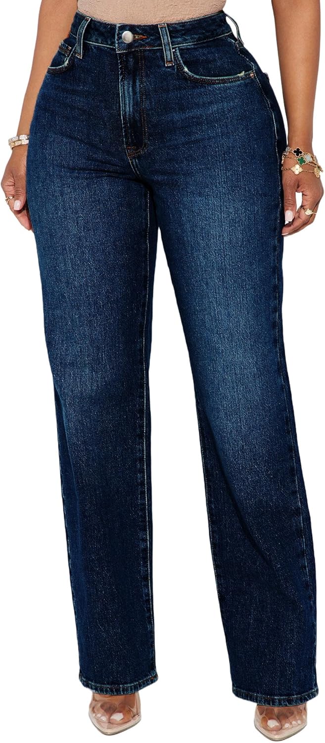 BessCops Straight Leg Jeans for Women High Waisted Wide Leg Stretchy Loose Denim Pants