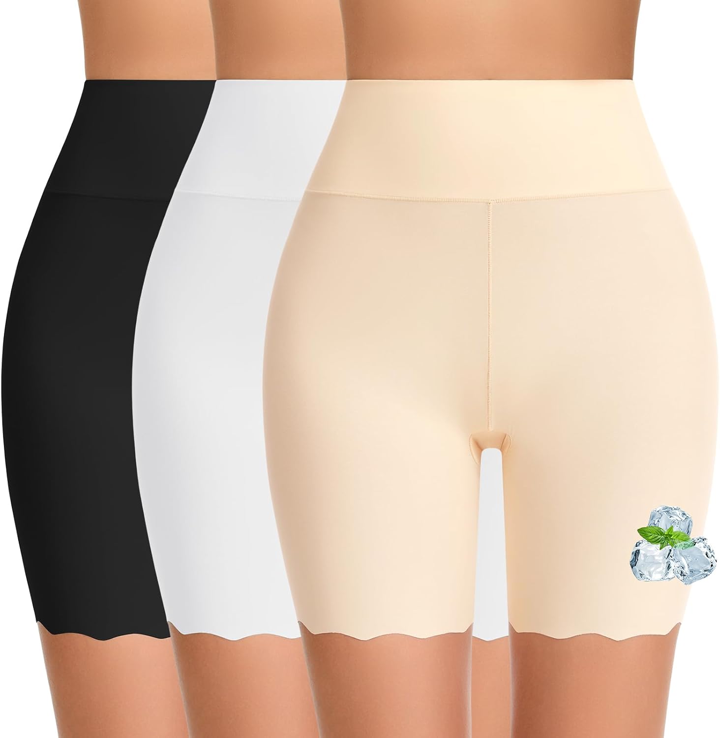 Cooling Slip Shorts for Under Dress Women Anti Chafing Seamless High-Wasited Shapewear Short Workout Biker Shorts