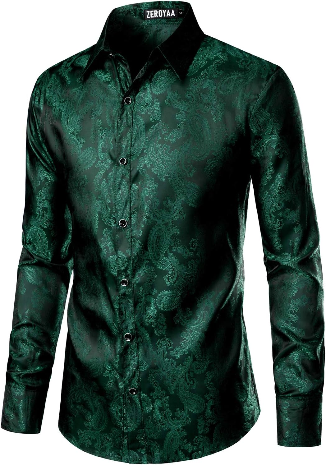 ZEROYAA Men's Paisley Jacquard Slim Fit Long Sleeve Button Up Dress Shirt for Party Prom