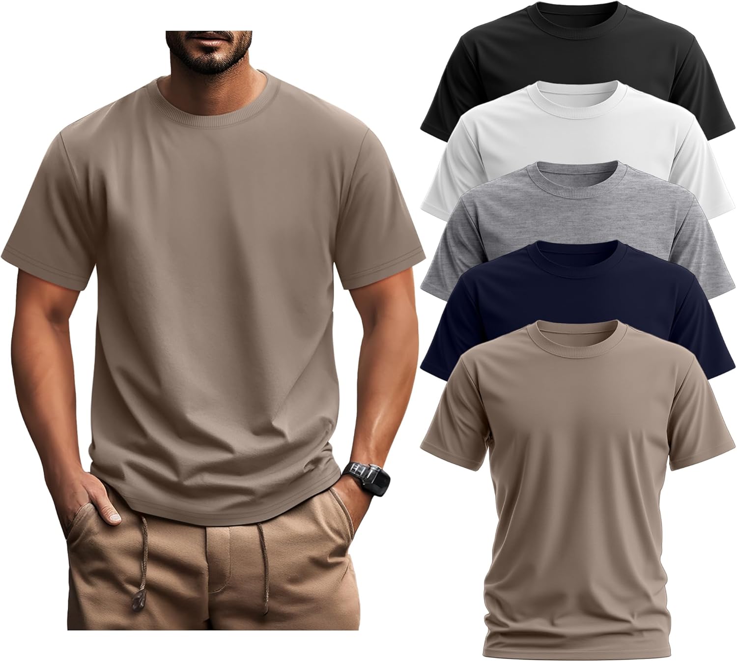 Ficerd 5 Pack Men's Big and Tall Shirts Short Sleeve Cotton Tee Summer Crew Neck Oversize Top Loose Fit Shirt Multipack