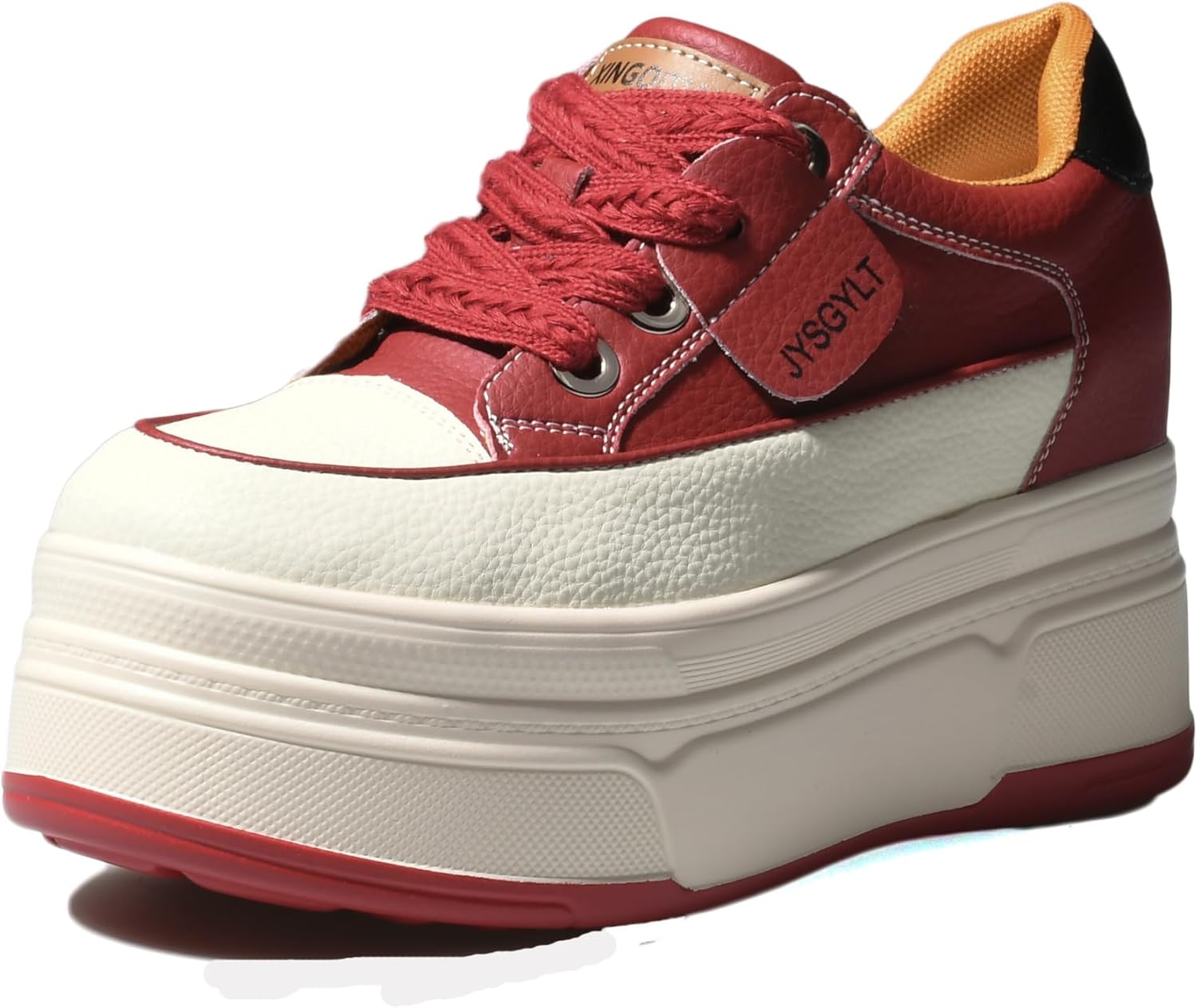 Platform Sneakers For Women - (3 inch-3.5 inch )6cm Heel & 3cm Inner Lift, Comfortable Cushioned Arch Support, Non-Slip Casual Walking Shoes, Microfiber Leather Platform Shoes White Black Red Yellow