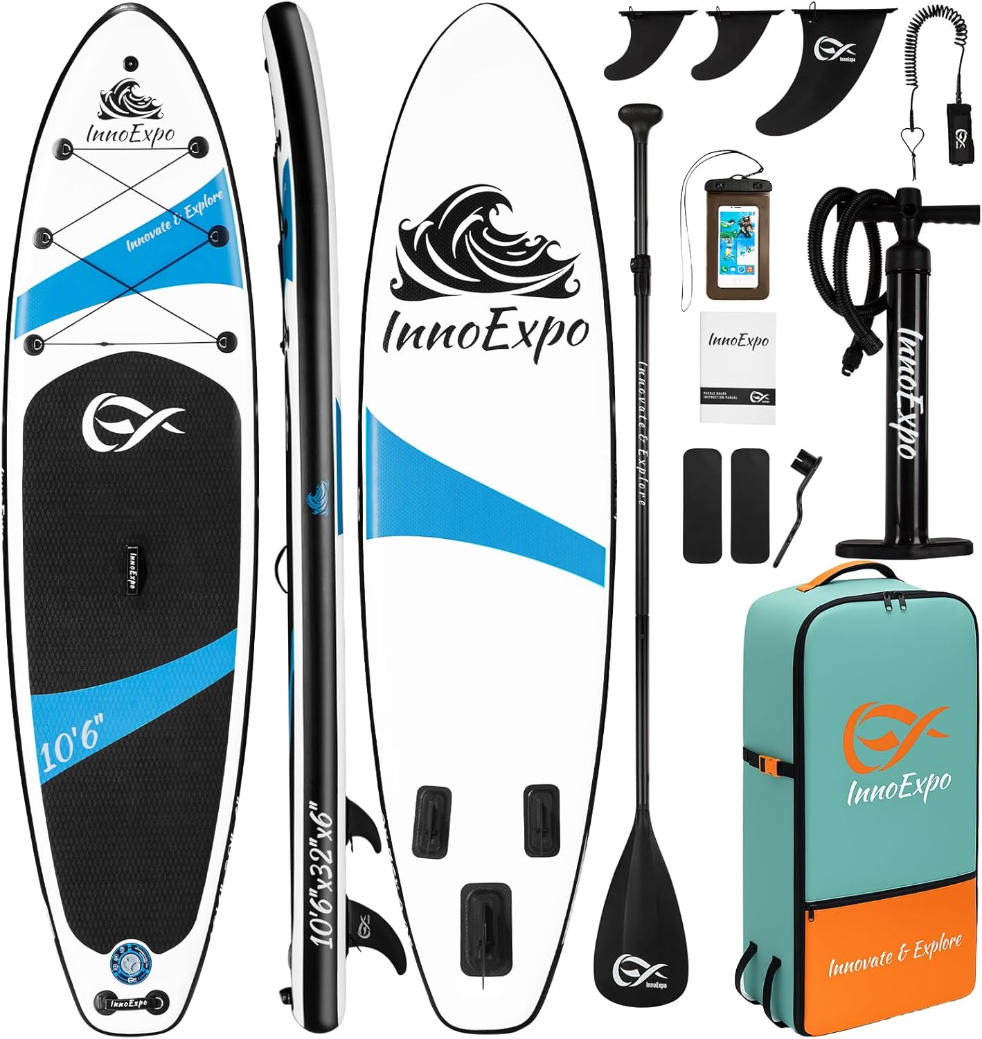 InnoExpo Inflatable Stand Up Paddle Boards with Premium Accessories, Wide Stable SUP Paddle Board Design, Non-Slip Comfort Deck for Youth & Adults