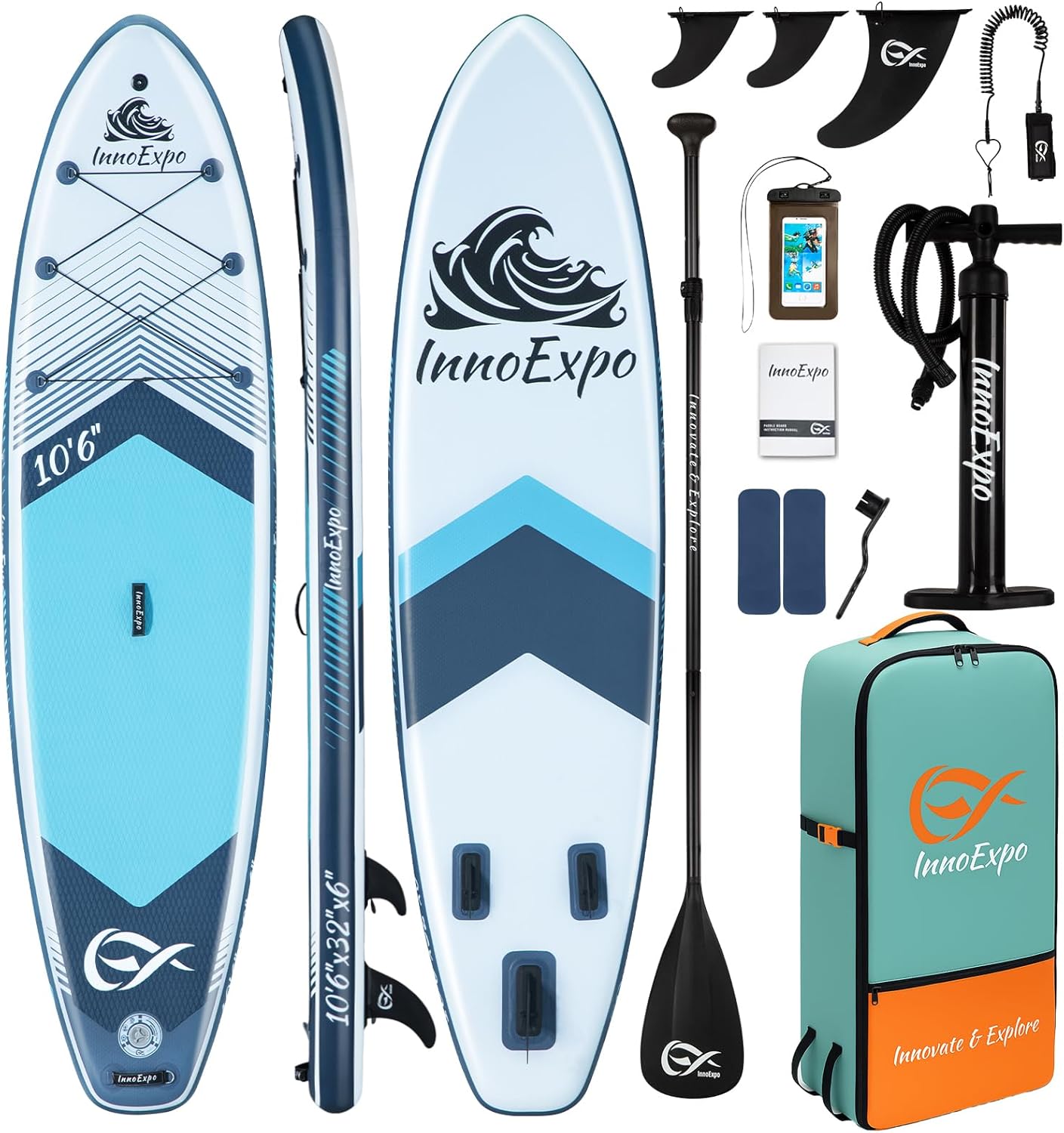 InnoExpo Inflatable Stand Up Paddle Boards with Premium Accessories, Wide Stable SUP Paddle Board Design, Non-Slip Comfort Deck for Youth & Adults