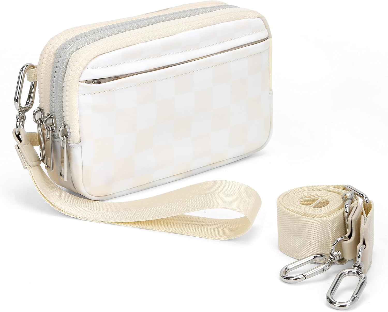 Checkered Wristlet Wallet for Women Tri-tone Cute Nylon Wristlet Purse with 5 zippers and ID Window Credit Card Holder