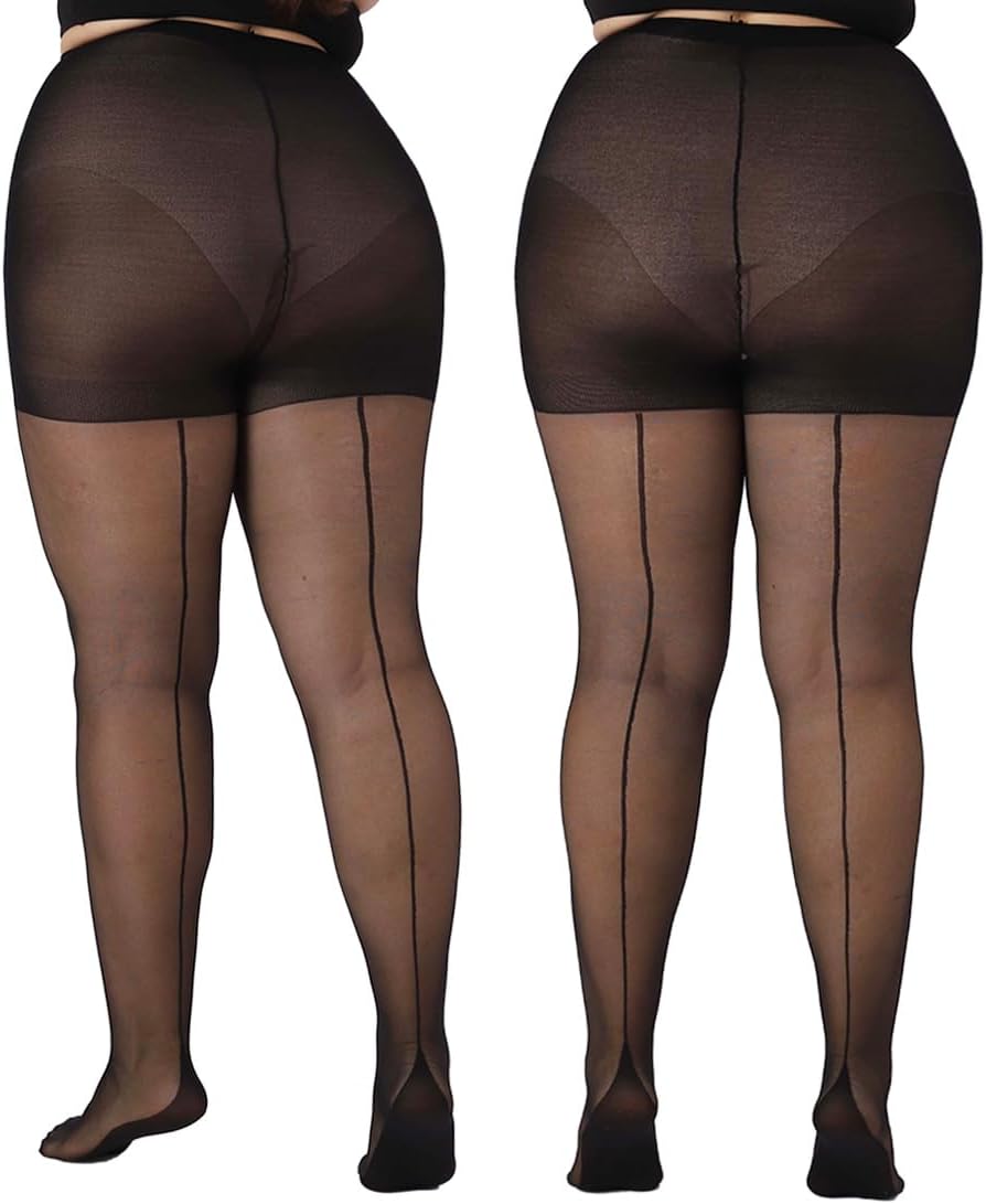 MERYLURE 2 Pairs Women's Plus Size Backseam 20D Sheer Tights, Control Top Pantyhose with Reinforced Toes