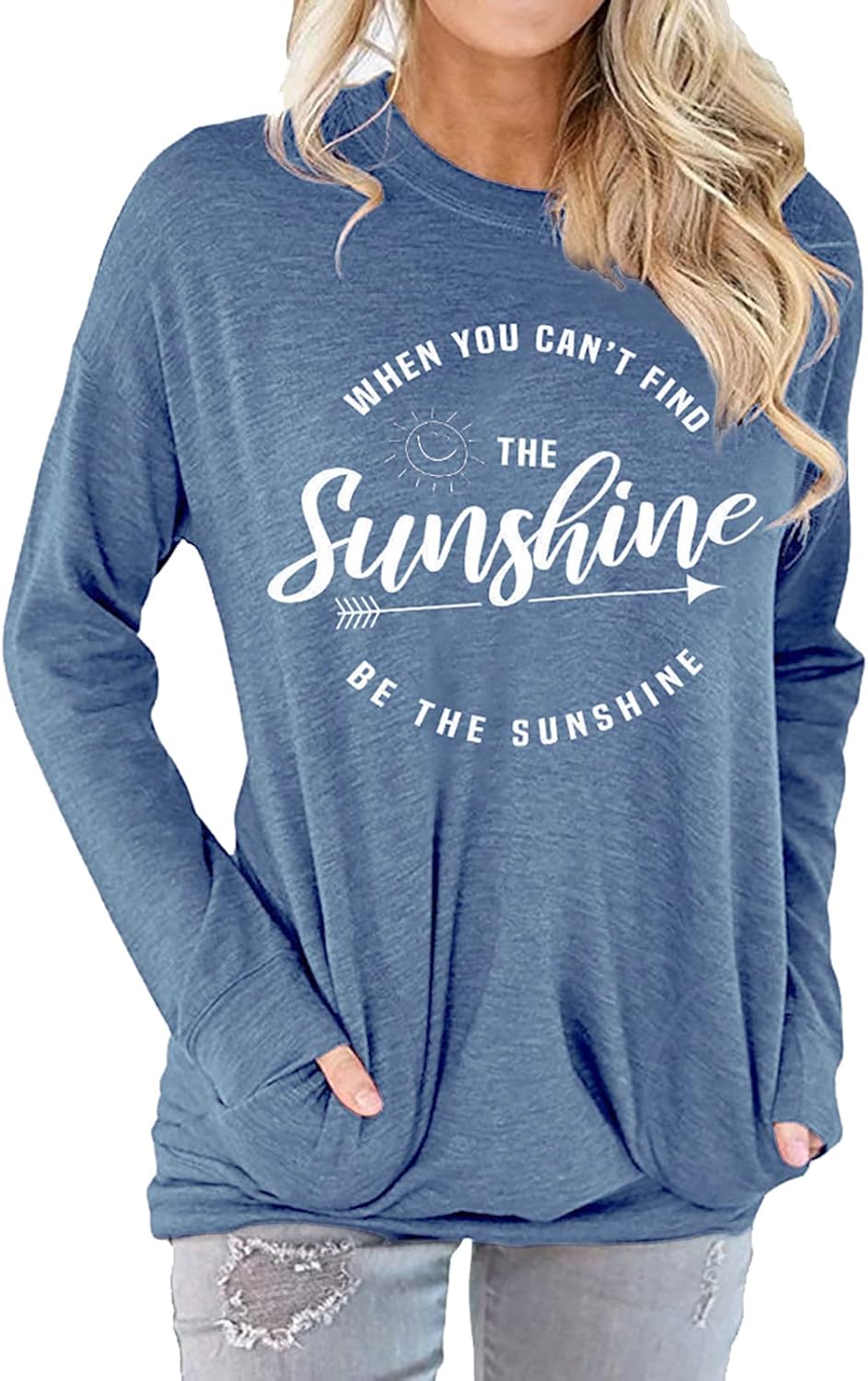 Muicy Womens Sunshine Shirt Casual Long Sleeve Shirt Tops Trendy Loose Fit Sweatshirts Tunic Tops with Pockets