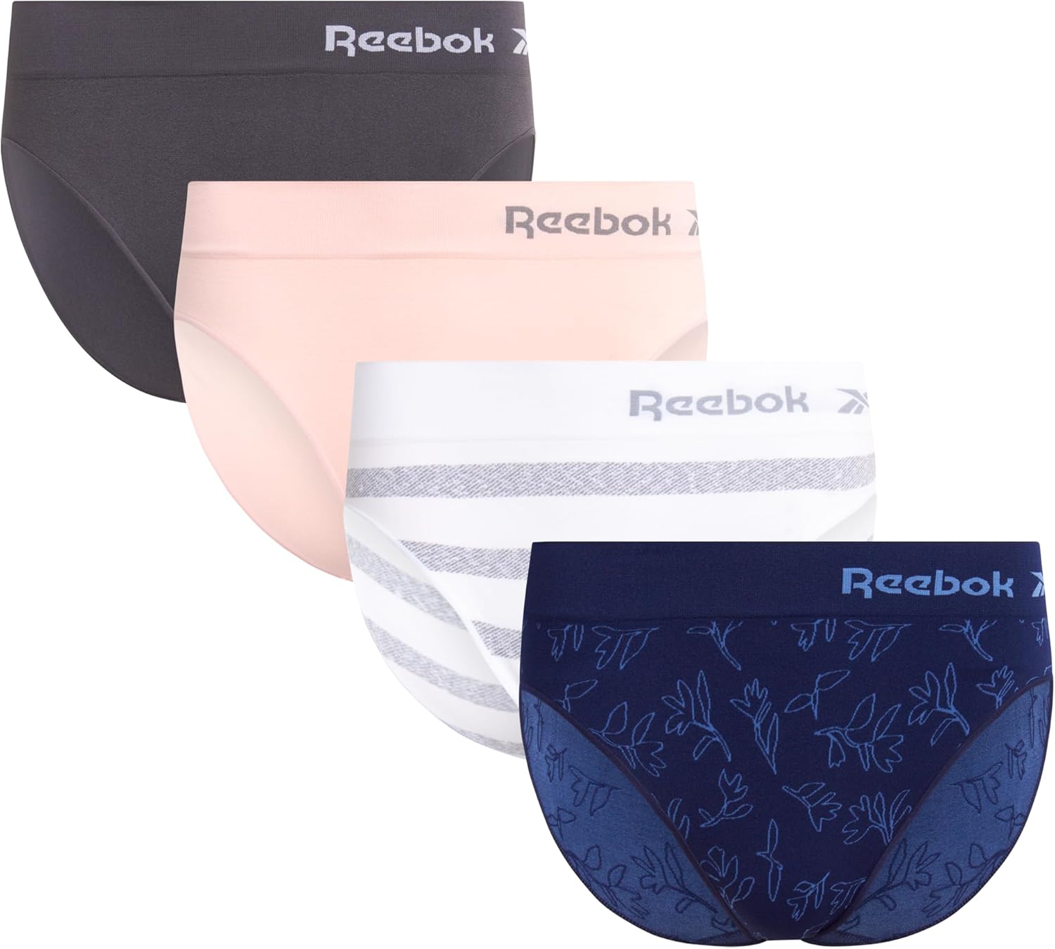 Reebok Womens Briefs Underwear - 4 Pack Breathable Soft Stretch High Cut Mid Waist Panties Underwear for Women (Sizes: S-XL)