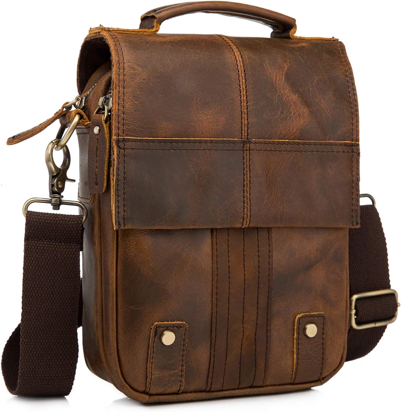 Le'aokuu Mens Crazy Horse Leather Cross Body Messenger Shoulder Satchel School Bag For 8" Tablets
