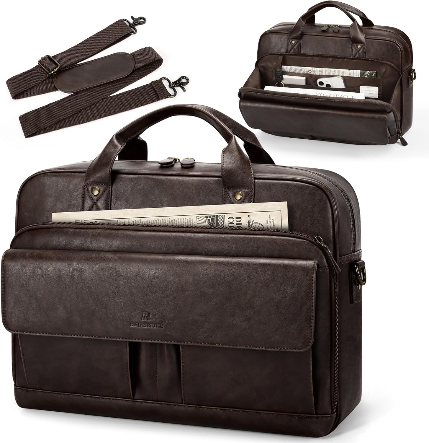 RAINSMORE Mens Laptop Bag PU Leather Messenger Bag 15.6 Inch Briefcase Vintage Computer Satchel Bag for Work Business