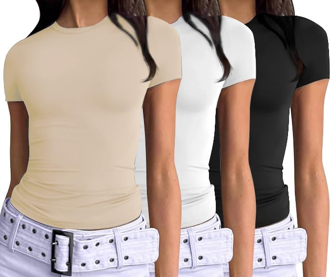 Women's 3 Pack Short Sleeve Shirts Basic Slim Fit Crop Tops Going Out Tops 2026 Spring Summer Tight Tees Y2k