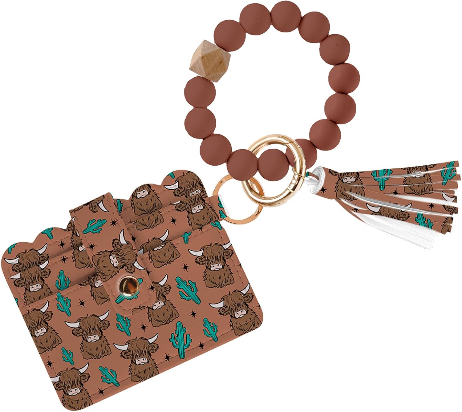 Wallet Keychain Wristlet, Silicone Bead Bracelet Key Ring Wallet with Wrist Strap and Card Case ID Window