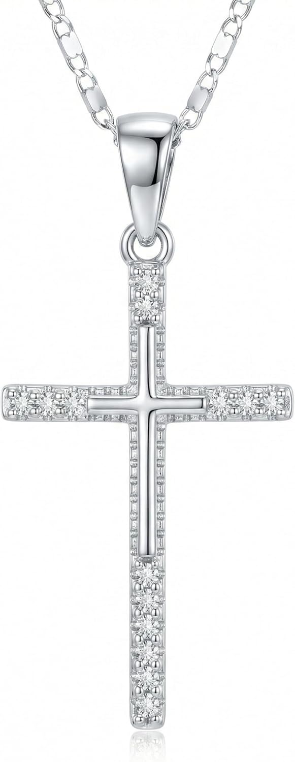 14K White Gold Cross Necklace for Women, Double-Sided Dainty Cross Pendant Necklace for Womens Elegant Faith Jewelry, Valentine’s Day Gift for Wife or Girlfriend or Mom