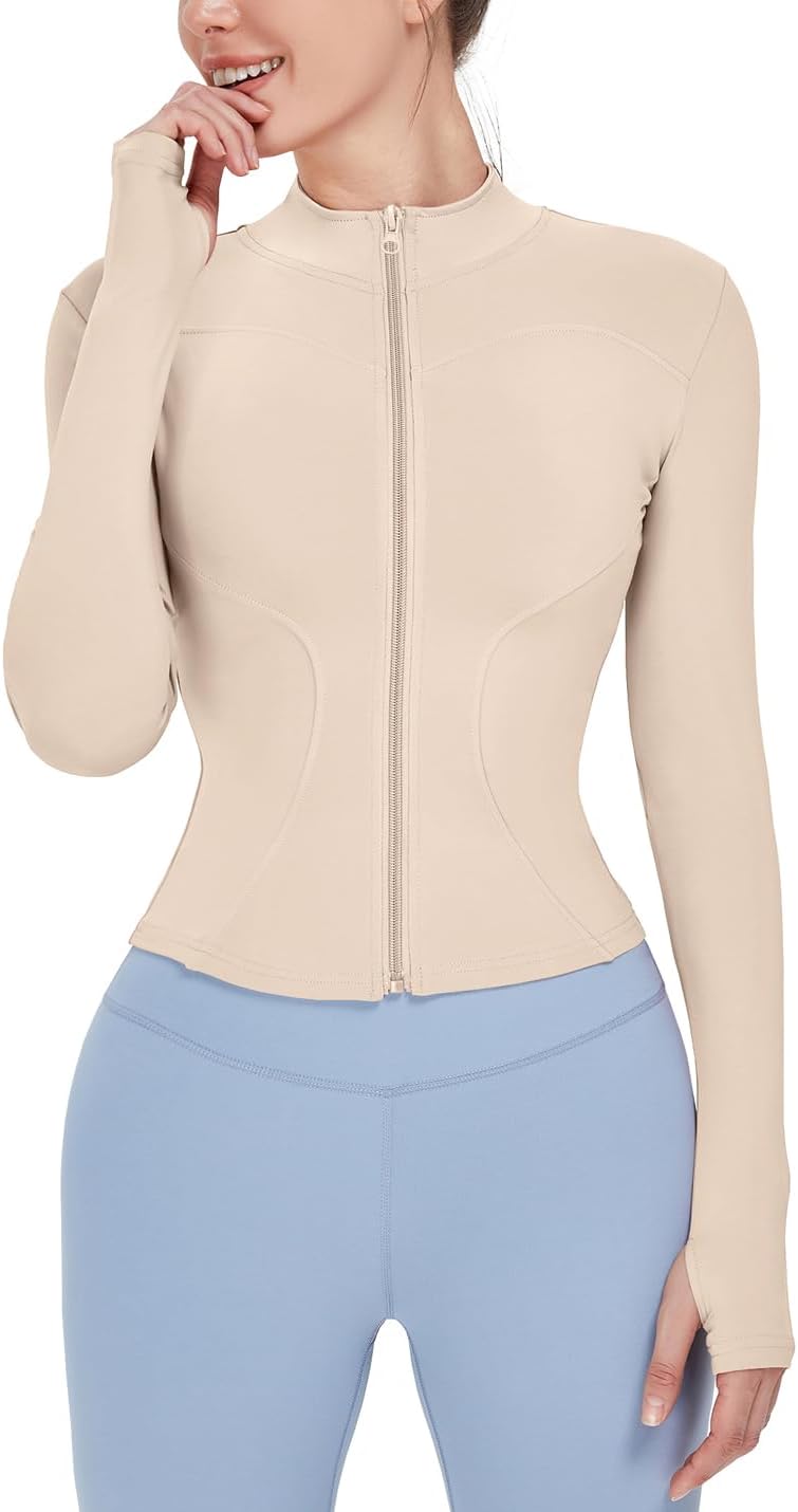 Gacaky Women's Slim Fit Lightweight Athletic Full Zip Stretchy Workout Running Track Jacket with Thumb Holes