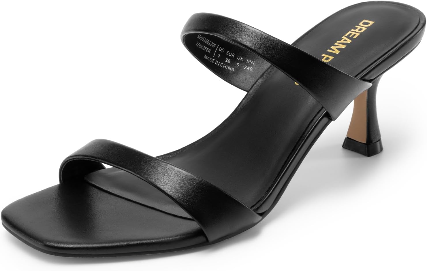 DREAM PAIRS Women's Low Kitten Heels Square Toe Two Strap Heeled Sandals Dress Casual Summer Mules Shoes