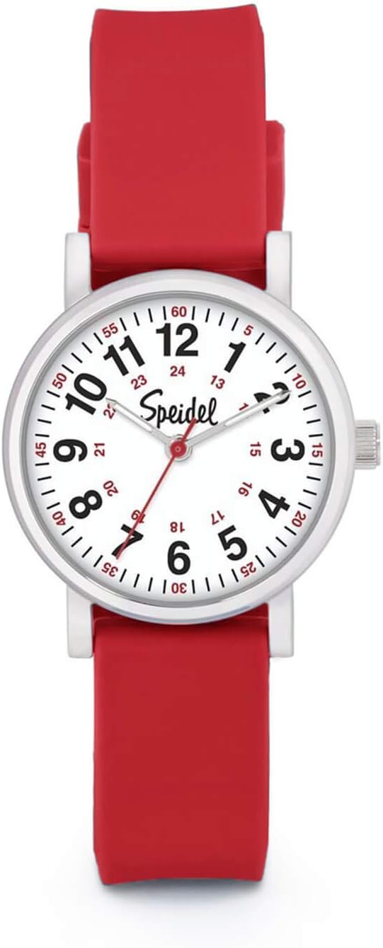 Speidel Scrub Petite Watch for Nurses, Medical Professionals, Mens and Womens Watch with Second Hand Nursing, Nurse Watches for Women Men, Waterproof 12 and 24 hr Time - Red