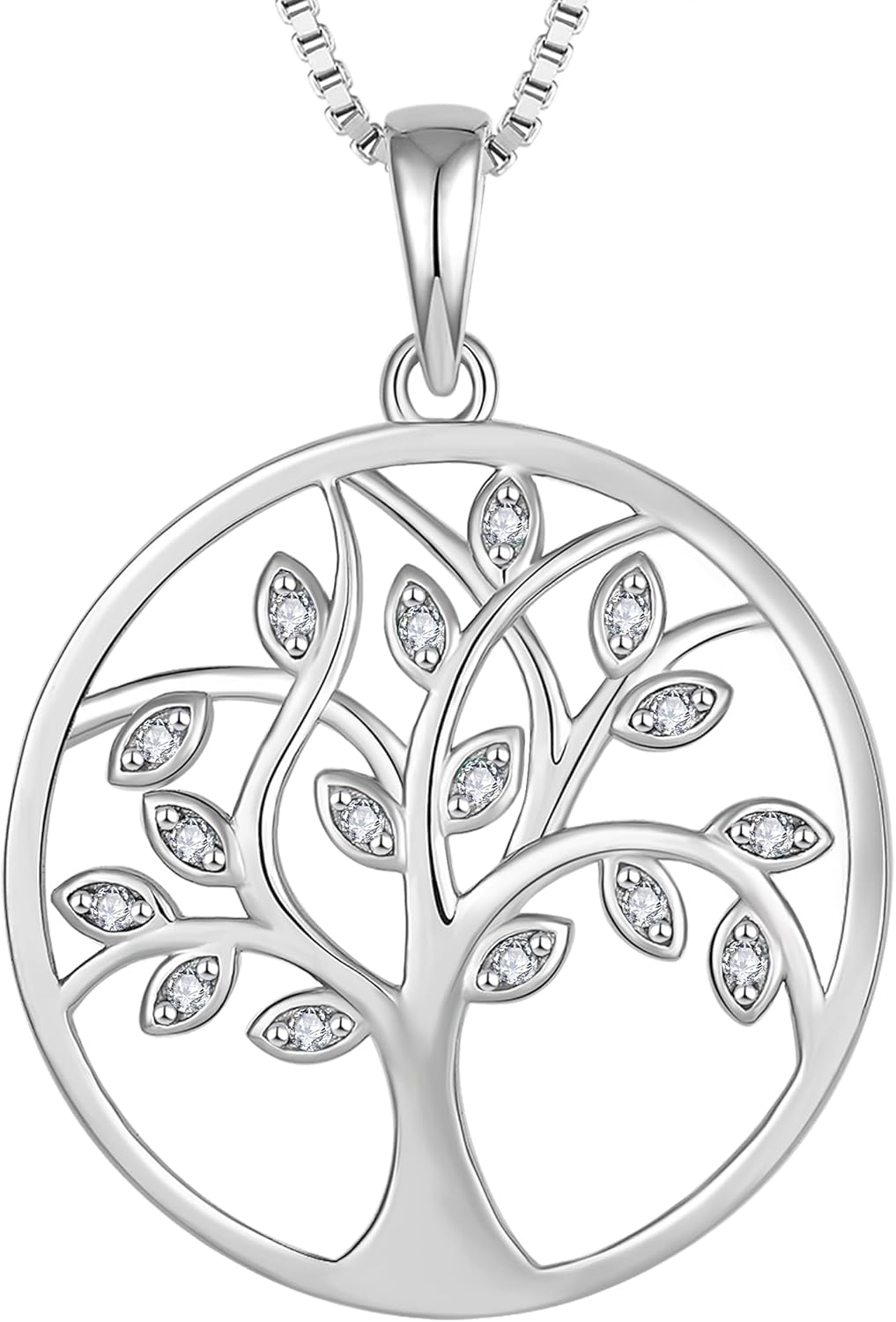 YL 925 Sterling Silver Tree of Life Necklace for Women Round Tree Pendant Birthstone Jewelry for Mom