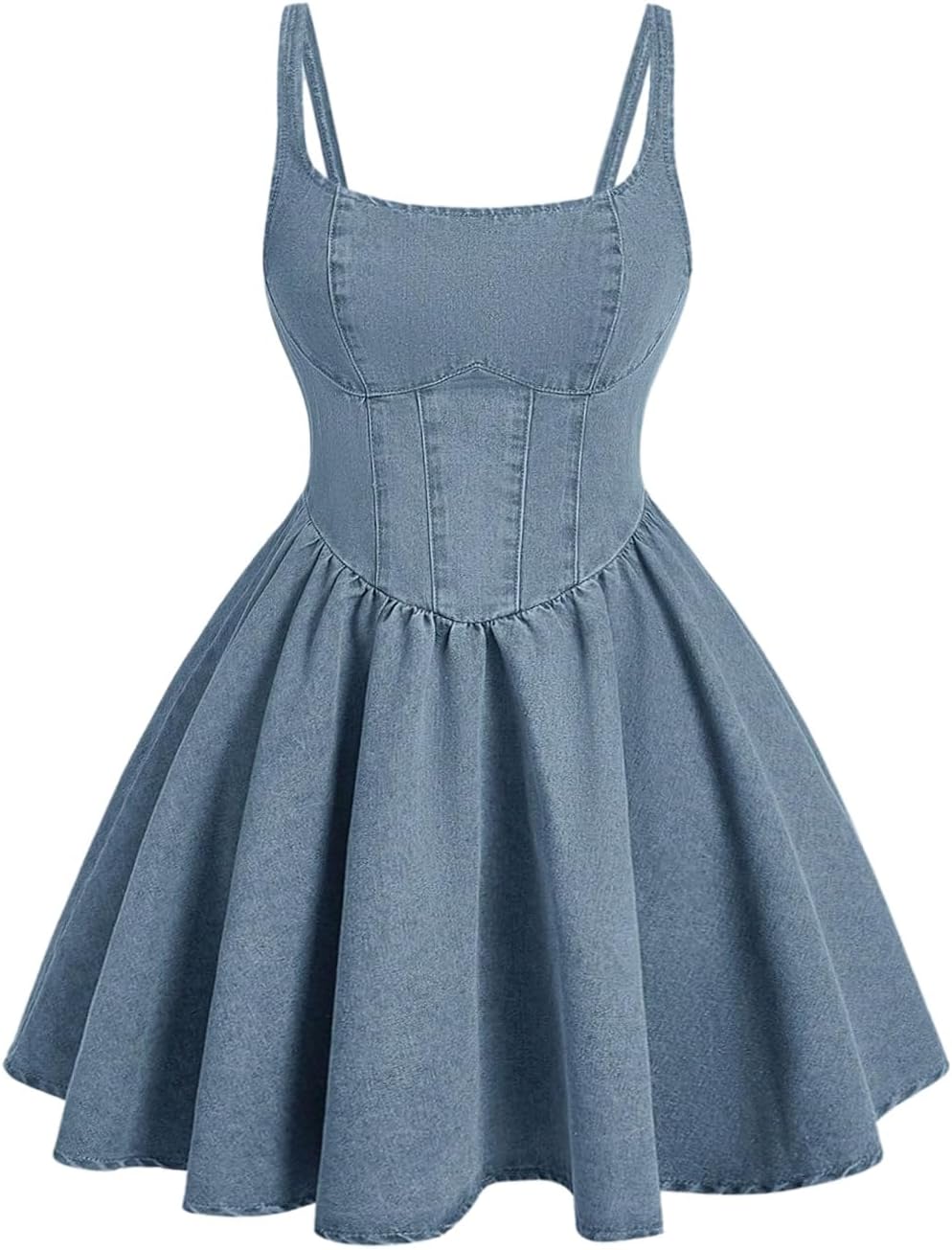 WDIRARA Women's Casual Square Neck Denim Dress Ruffle Hem A Line Mini Dress